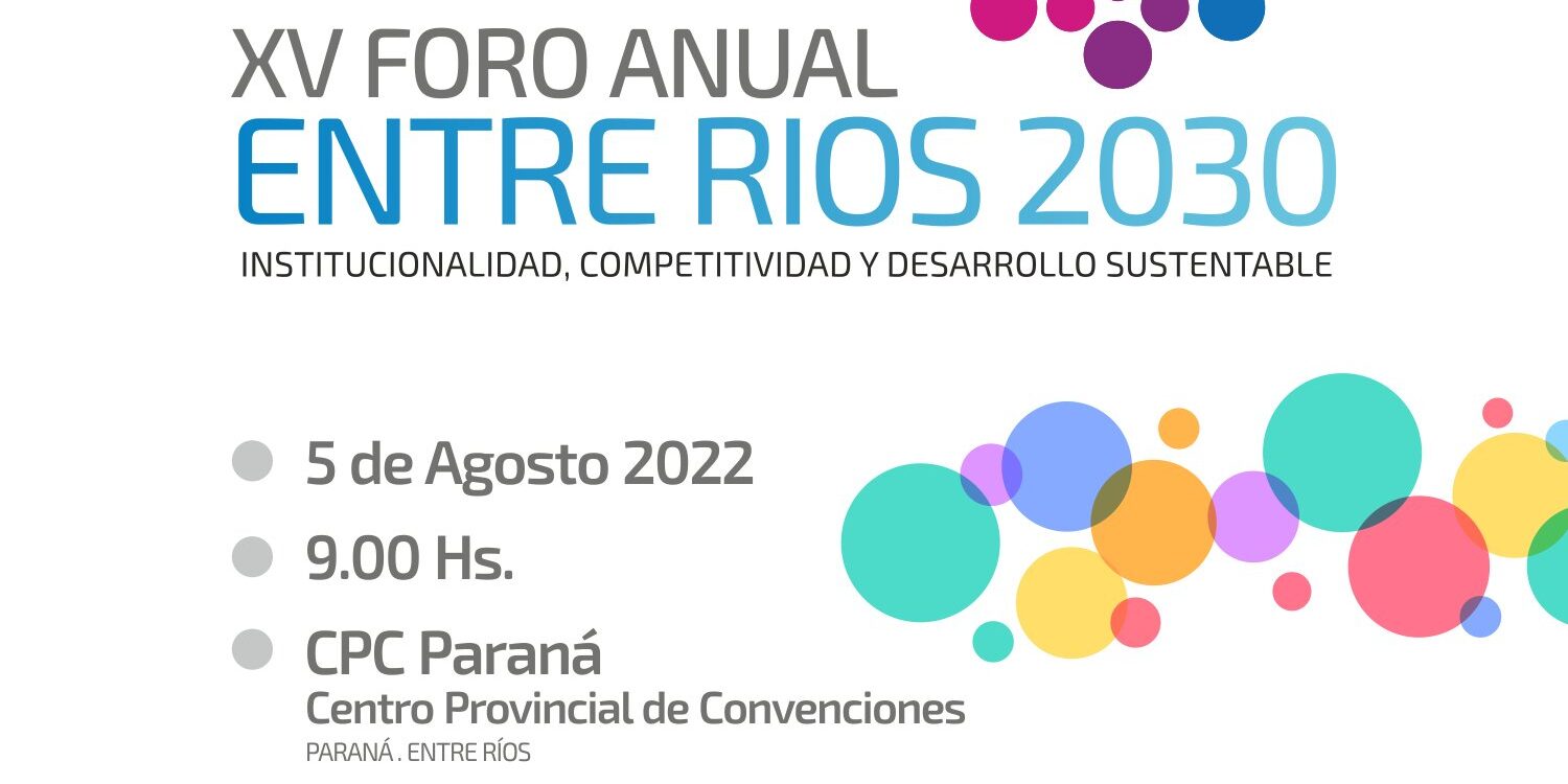 El XV Foro Anual “Institucionalidad, competitividad y desarrollo sustentable” del Consejo Empresario de Entre Ríos (CEER) se celebrará el viernes 5 de agosto a partir de la 09:00 hs. en el Centro Provincial de Convenciones (San Martín 15 – Paraná).