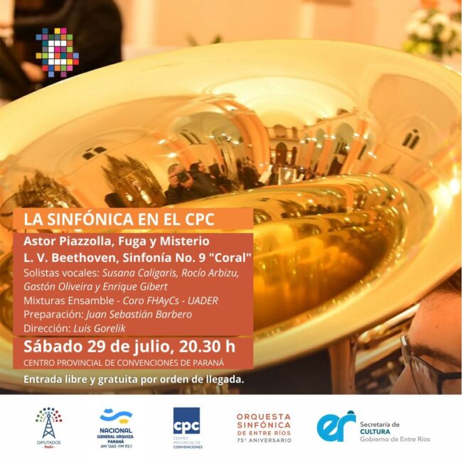 El sábado 30 de septiembre, desde las 20.30, en el Centro Provincial de Convenciones (San Martín 15 – Paraná), se llevará a cabo el próximo concierto de la Orquesta Sinfónica de Entre Ríos (OSER), organizado por la Secretaría de Cultura de Entre Ríos. La entrada será libre y gratuita, por orden de llegada. El concierto…